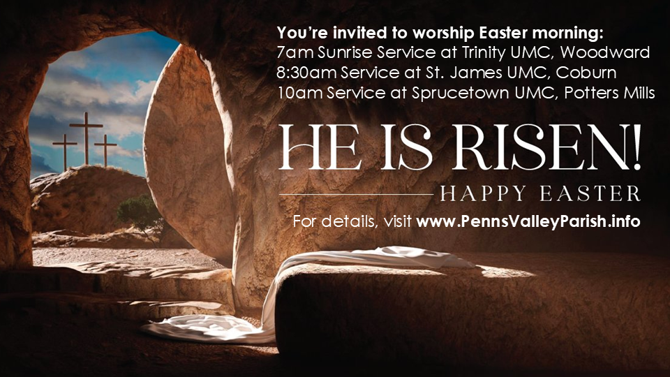 April 2 – Maundy Thursday – Worship at 7pm hosted by St. James UMC as part of the East Penns Valley Ministerium Lent series